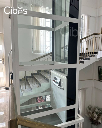 ជណ្តើរយន្តកញ្ចក់សម្រាប់ផ្ទះ ដែលប្រើថាមពលភ្លើងតិច មានរចនាសម្ព័ន្ធ ស្អាត និងសន្សំកន្លែង។